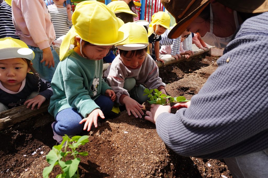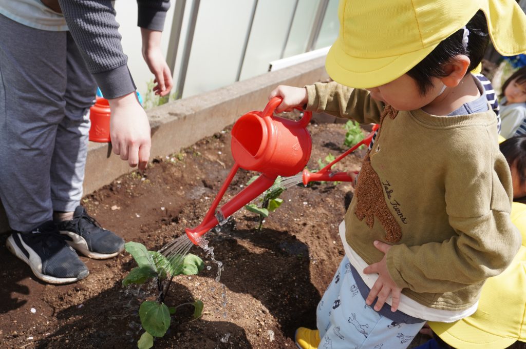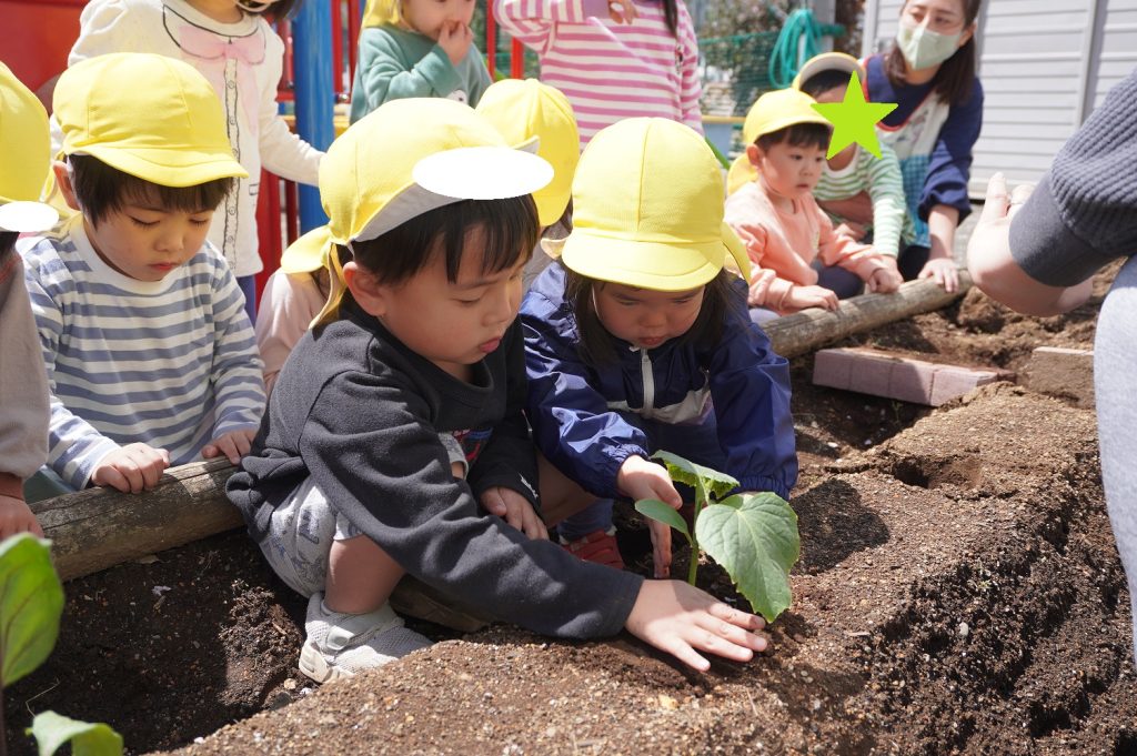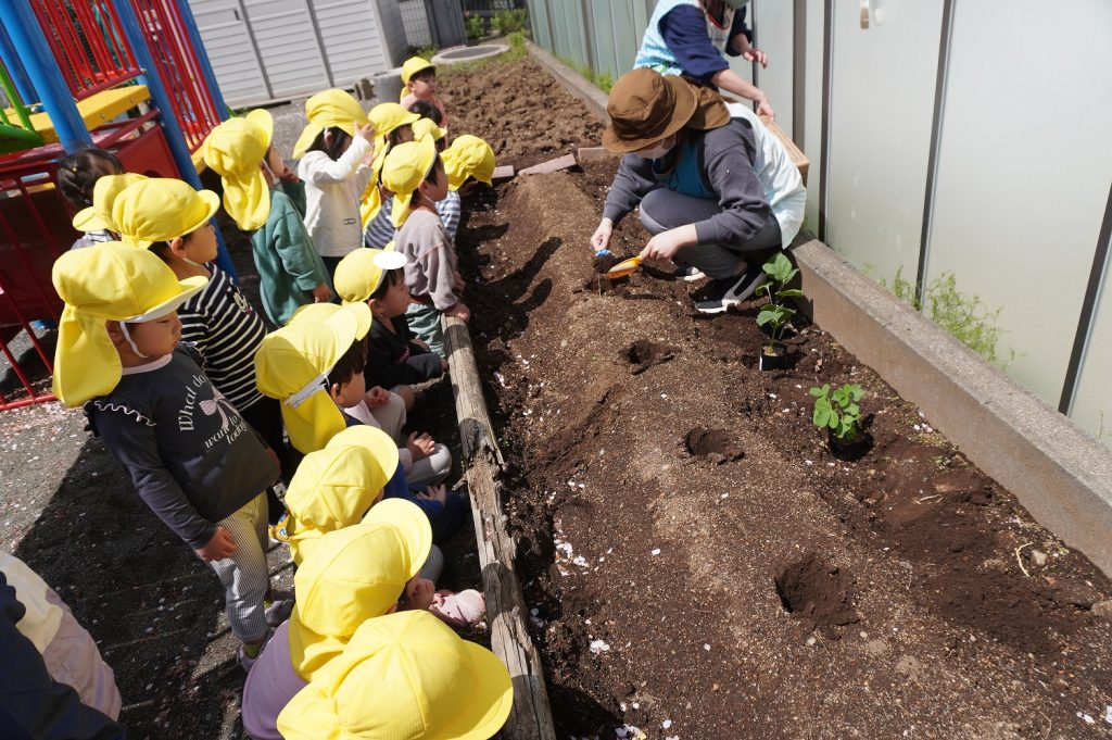 「大きくなるといいね」「たくさんできるかな」などと野菜の成長を